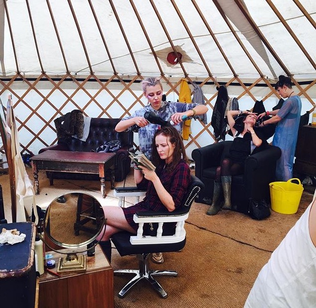 After a huge (and tiring) success at SGP, the Blue Tit tribe moved a little bit closer to home and set up base at Hertfordshire’s Standon Calling. With a more chilled vibe, our stylists used Urban Outfitters hair chalks from cool blues to vibrant purples giving everyone –including the boys, a bold eye catching look. Fishtail plaits and ruffled curls were enough to make lovely singer Charlotte OC visit the salon for that perfect boho look before going on stage.