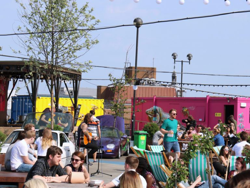 Like rooftop bars? You’ll love Roof East. Situated slap bang on top of the Stratford shopping centre, it’s fast become our favourite summer drinking spot. There’s cocktails, deckchairs, DJs, Hawksmoor hot dogs and regular film screenings from the Rooftop Film Club. We’re sold.
